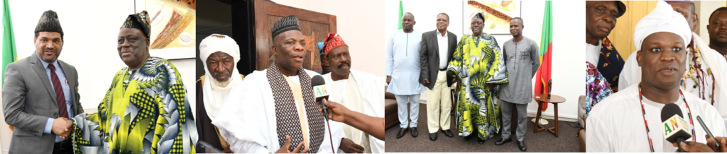 Ensuite, on lui a expliqué ce que le chef de l’Etat, Patrice Talon est en train de faire en direction des musulmans. Je parle de la communauté musulmane. Comme vous le savez, il y a un grand bâtiment qui a été construit à Akpakpa pour héberger les musulmans avant l’embarquement pour l’aéroport. Nos pèlerins avaient l’habitude d’errer, de se promener dans les mosquées avant leur embarquement. Désormais, c’est chose faite. Le chef de l’Etat a réconcilié aussi les musulmans, je parle de l’union islamique du Bénin qui était divisée entre temps en deux et maintenant nous sommes un et indivisible. Tout ça là, c’est grâce au chef de l’Etat >>.