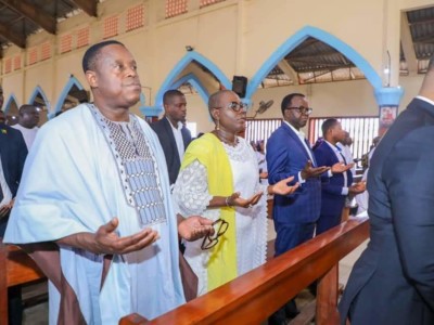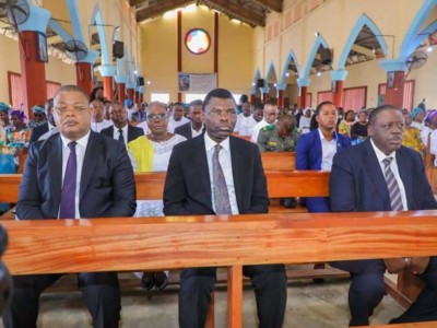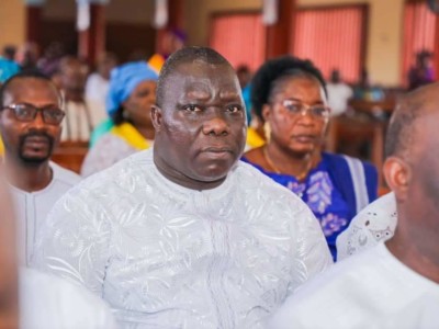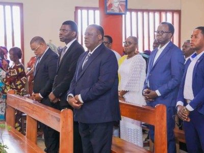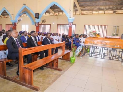 C’est l’église catholique St Joseph de Dêkoungbé dans la commune d’Abomey-Calavi qui a abrité dans la matinée de ce jeudi 29 septembre 2022, la messe d’enterrement de Norbert AÏVOHOZIN, député de la 6ème circonscription électorale rappelé à Dieu le 28 juillet 2022. Après avoir présidé hier au Palais des gouverneurs à Porto-Novo en présence de ses collègues députés et des fonctionnaires parlementaires la cérémonie de derniers hommages du Parlement à l’intention de ce grand serviteur de la République, le Président de l’Assemblée nationale Louis Gbèhounou VLAVONOU a tenu à assister à cette messe d’enterrement pour dire son dernier adieu au frère, collègue et camarade que représentait pour lui honorable Norbert AÏVOHOZIN. À l’instar des députés de la huitième législature, des personnalités politiques telles que le Maire de la commune d’Abomey-Calavi Angelo AHOUANDJINOU, des responsables au plus haut niveau du parti Union Progressiste le Renouveau dont le Président Joseph DJOGBÉNOU, le deuxième vice-président Gérard GBENONCHI, la Directrice administrative Christelle HOUNDONOUGBO ont également pris part à ladite messe.