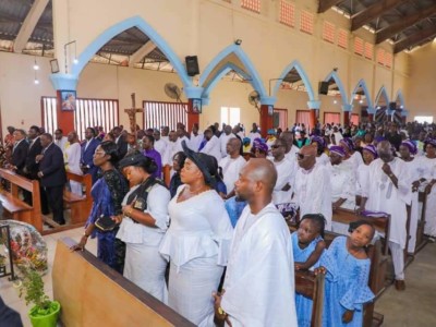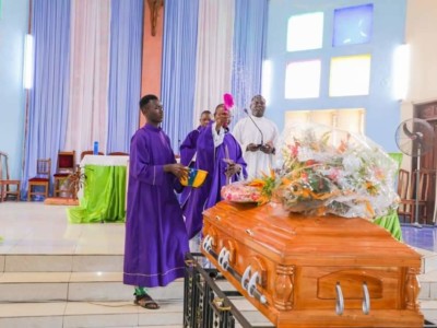 Le père célébrant dans son homélie a rappelé à toute l’assistante que la vie de tout homme est comme un livre ouvert devant Dieu. Et seul Dieu sait lire les phrases qui se trouvent dans ce livre. Il convient donc de ne rien faire sur cette terre qui soit étranger à Dieu. Il ajoute que si nous vivons dans l’amour de Dieu dans sa justice et dans la vérité, la promesse faite à Nathanaël dans la sainte écriture sera notre aussi. Avant de mettre fin à son, homélie, il invite toute la famille biologique et politique de feu honorable Norbert AÏVOHOZIN de trouver réconfort au travers des textes tirés de la bible tout en les exhortant à vivre dans l’amour de Dieu, dans l’espérance où que nous soyons et qui que nous soyons.