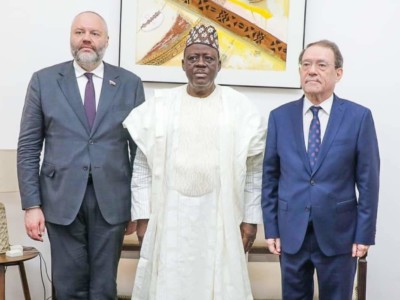 En visite au Bénin depuis deux jours, une délégation de parlementaires Russes conduite par Nikolay V. NOVICHKOV, député de l’Assemblée fédérale de Russie, responsable du groupe d’amitié Russo-Afrique était au cabinet du président de l’Assemblée nationale Louis Gbèhounou VLAVONOU dans la matinée de ce mercredi 22 février 2023. Il était question pour ceux-ci de féliciter le président VLAVONOU pour sa réélection à la tête du parlement béninois et de profiter pour lui transmettre officiellement l’invitation de son homologue de la Russie à la Conférence parlementaire qui se tiendra à Moscou en mois de mars prochain.