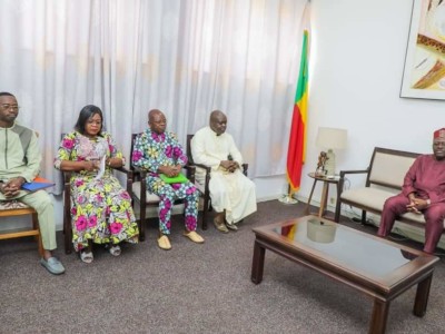 Le Président de l’Assemblée nationale du Bénin, Louis Gbèhounou Vlavonou a reçu ce mercredi 1er mars 2023 à son cabinet au Palais des gouverneurs de Porto-Novo une délégation du Mouvement catholique des cadres et personnalités politiques du Bénin (MCCPP), section diocésaine de Porto-Novo. Ladite délégation conduite par l’Abbé Fatoumbi Adédiran Bertin, Aumônier Diocésain de Porto-Novo est allée dire de vives voix ses félicitations au premier responsable du Parlement béninois reconduit à son poste le dimanche 12 février 2023. C’est du moins ce qu’a confié le Sieur Thomas Houédanou, membre de la délégation à la presse.