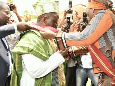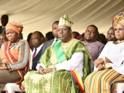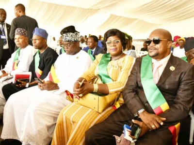 Plusieurs animations folkloriques ont meublé cette cérémonie d’investiture dont la prestation du mythique groupe Les Pepit’Art de Medédjonou et le passage du slameur K-mal Radji.