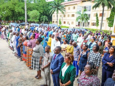 Le 1er Août 1960, a indiqué Jolidon Lafia, pour la première fois, dans une euphorie totale mélangée à de l’émotion, l’hymne national, l’Aube nouvelle, a été chanté à la place de l’indépendance. Il fut chanté pour la première fois avec les paroles fortes qu’il véhicule et qui rappellent la beauté et la richesse des notre chère patrie. La devise adoptée, a complété Jolidon Lafia, est Fraternité-Justice-Travail. (Fraternité pour dire que nous sommes frères, sœurs et que nous devons le rester et regarder dans la même direction quoi qu’il en soit et quoi que ça coûte; Justice parce que l’injustice crée des frustrations et sépare l’un de l’autre. La justice renforce la fraternité; Travail parce que c’est par le Travail que nous allons construire notre pays et créer les conditions d’une vie paisible à chacun et à tous).
