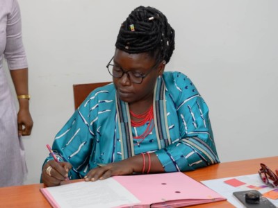 À son tour, Madame Lylly HOUNGNIHIN, Directrice exécutive de Laboratorio Arts Contemporains a exprimé toute sa joie de voir se concrétiser la signature de ladite convention de partenariat. Elle a remercié la Directrice de l’IPaB pour sa franche collaboration qui a permis la concrétisation. En effet, le Laboratorio Arts Contemporains est une plateforme intercontinentale de mise en œuvre de projets de coopération multidisciplinaire dans le champ des Industries Culturelles et Créatives en Afrique, en Europe et dans les Caraïbes. Cette plateforme est créée au Bénin depuis 2010. Laboratorio Arts Contemporains inscrit son action à la croisée des champs d’application de la recherche fondamentale et de la création artistique contemporaine, en ciblant principalement les femmes, les jeunes et les publics éloignés de l’offre culturelle et artistique.