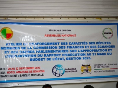 Ce mercredi 20 septembre 2023, le Premier vice-président de l’Assemblée nationale, Barthélémy Kassa a procédé au lancement des travaux de l’atelier de renforcement des capacités sur l’appropriation et l’exploitation du rapport d’exécution au 31 mars du budget de l’État, gestion 2023 à l’hôtel Amazone à Bohicon. Cet atelier est organisé par l’Unité d’analyse, de contrôle et d’évaluation du budget de l’État (Unaceb) grâce la Banque mondiale à travers la Cellule technique d’appui, au suivi et à l’exécution des projets du Ministère de l’économie et des finances et de la coopération.