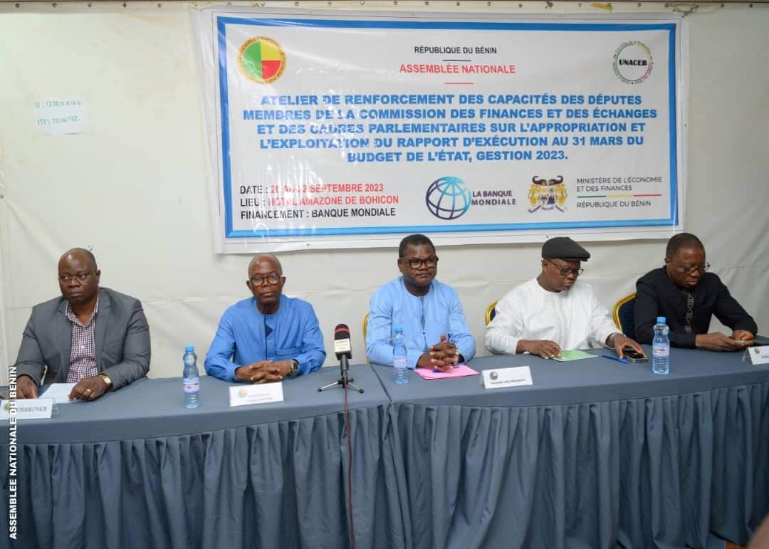 Ce mercredi 20 septembre 2023, le Premier vice-président de l’Assemblée nationale, Barthélémy Kassa a procédé au lancement des travaux de l’atelier de renforcement des capacités sur l’appropriation et l’exploitation du rapport d’exécution au 31 mars du budget de l’État, gestion 2023 à l’hôtel Amazone à Bohicon. Cet atelier est organisé par l’Unité d’analyse, de contrôle et d’évaluation du budget de l’État (Unaceb) grâce la Banque mondiale à travers la Cellule technique d’appui, au suivi et à l’exécution des projets du Ministère de l’économie et des finances et de la coopération.