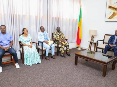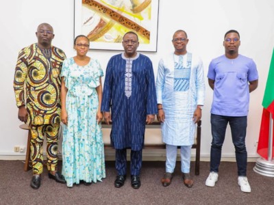 Avant le directeur Arnaud AGBODJÈTÉ, l’autorité parlementaire a reçu une délégation de l’ensemble vocal « Chœur la Symphonie du Bénin » conduite par son président Beaujour BAMENOU. Il s’est également confié à la presse parlementaire : « …Nous sommes venus voir le Président de l’Assemblée nationale pour lui présenter l’ensemble vocal et de le solliciter pour l’événement c’est à dire les 7ans que nous organisons. Il s’agit d’un grand concert dénommé « OKPÊ » qui se tiendra à la salle rouge du Palais des Congrès de Cotonou… »