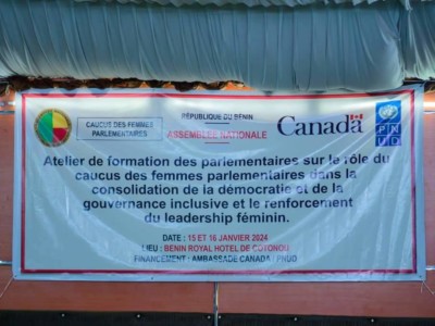 Le Président Louis Gbèhounou Vlavonou a ouvert ce lundi 15 janvier 2024 au Bénin royal hôtel de Cotonou le séminaire de formation des parlementaires sur le rôle du Caucus des femmes parlementaires du Bénin dans la consolidation de la démocratie et de la gouvernance inclusive et le renforcement du leadership féminin. Ledit atelier qui bénéficie de l’appui technique et financier de l’Ambassade du Canada au Bénin et du Programme des Nations-Unies pour développement (PNUD), rassemble les 29 femmes députés de la 9ème législature, les membres de la conférence des présidents, des responsables à divers niveaux du Parlement, des responsables d’ONG et des représentants de plusieurs partenaires techniques et financiers.