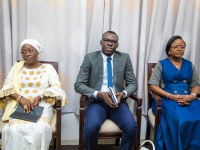 « …C’est une visite qui me permet de rencontrer le président de l’Assemblée nationale en tant que l’une des grandes personnalités de l’État pour le remercier de son soutien au moment des élections. Il ne vous aura pas échappé que si je suis à la Haute Cour de Justice, c’est parce-que je suis à la Cour constitutionnelle et que j’ai été proposé à la Cour constitutionnelle par le bureau de l’Assemblée nationale. Donc il me semblait important d’abord de remercier la représentation nationale pour cette promotion qu’elle m’a faite et ensuite en tant que présidente de la Haute Cour de justice, présenter mes civilités au président de l’Assemblée nationale. Vous savez bien que la Haute Cour de Justice ne fonctionne pas sans l’Assemblée nationale. C’est l’Assemblée nationale qui vote l’acte de poursuite, c’est toujours elle qui vote l’acte d’accusation. Donc vous imaginez bien qu’il est impossible pour la Haute Cour de Justice d’avoir à fonctionner sans cette représentation nationale. Aussi, vous aurez remarqué que dans la Haute Cour de Justice, vous avez six (6) députés qui sont des députés juges. Bien évidemment dans cette posture, ils ne sont plus députés mais des juges et donc des personnes impartiales. C’est dans ce sens là que la place de la haute juridiction auprès de la représentation nationale est importante. On juge les membres de l’exécutif et donc des personnes qui occupent des fonctions éminemment essentielles dans l’Etat. Il est donc important qu’il y ait une forme de connexité entre ceux qui décident pour le compte de la nation et ceux qui sont les jugés. Je sors de cette rencontre assez confiante du soutien que nous offre le président de l’Assemblée nationale. C’est pour moi un grand honneur et en même temps une responsabilité… »