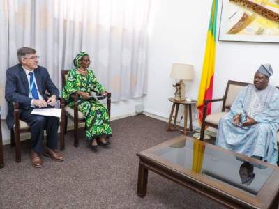 Dans le cadre du partenariat qui existe entre le Parlement béninois et le Fonds des Nations Unies pour l’enfance (UNICEF) ici au Bénin, Djanabou MAHONDE, Représentante Résidente de l’UNICEF au Bénin a effectué un déplacement sur le palais des gouverneurs à Porto-Novo dans la matinée de ce mardi 26 mars 2024 où elle a été reçue par le président de l’Assemblée nationale Louis Gbèhounou VLAVONOU. C’était l’occasion pour les deux personnalités de faire le point des avancées et des projections sur l’avenir.