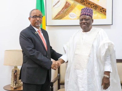 À la tête d’une délégation, Aouale MOHAMED ABCHIR, Représentant Résident du Programme des Nations Unies pour le développement (PNUD) au Bénin a été reçu dans la matinée de ce lundi 03 juin 2024 au Palais des gouverneurs à Porto-Novo par le Président de l’Assemblée nationale Louis Gbèhounou VLAVONOU. Après avoir passé environ quatre années au Bénin, le diplomate appelé à d’autres fonctions a bien voulu présenter au Président de l’Assemblée nationale le bilan de la collaboration entre le PNUD et le parlement béninois.