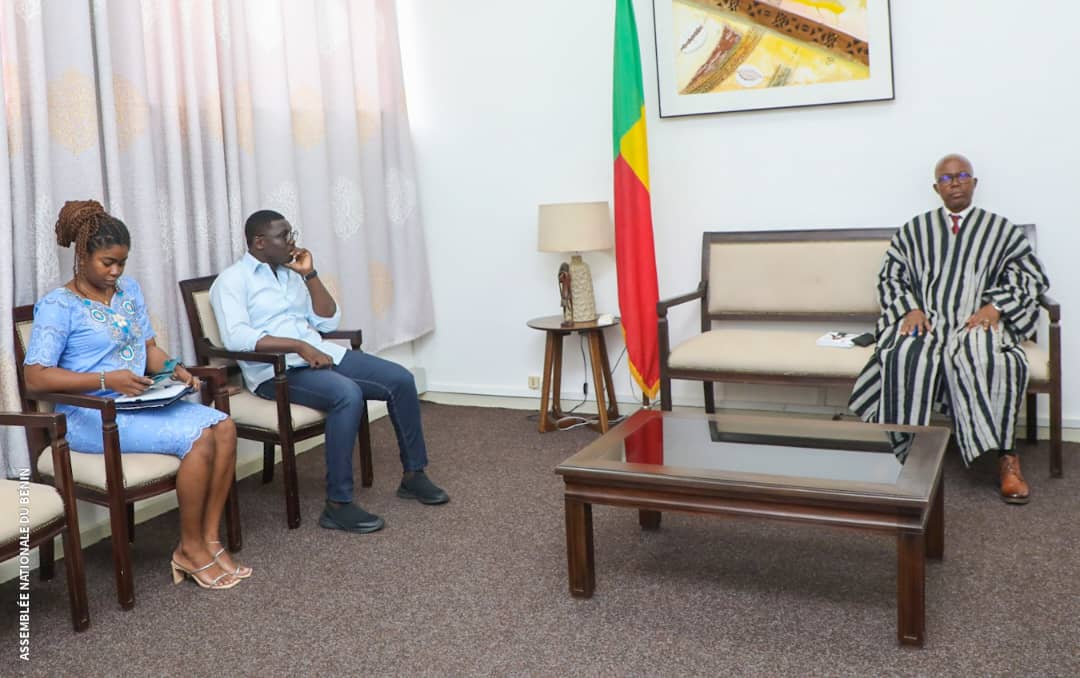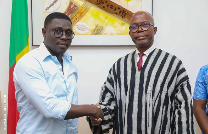 Une délégation conduite par Stephens AKPLOGAN, écrivain biographe et Directeur littéraire des éditions l’harmattan Bénin a été reçue par Mathieu AHOUANSOU, Directeur de cabinet du Président de l’Assemblée nationale du Bénin. Il est venu soumettre au Président de l’Assemblée nationale un projet de collaboration avec l’institution visant à publier des lois votées afin de les rendre plus fluides.