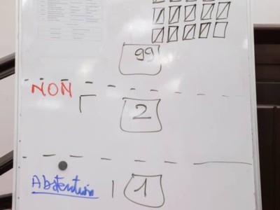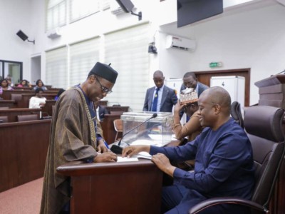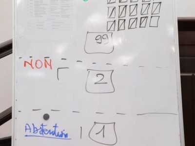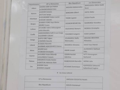 En effet, le point relatif à poursuite de la désignation des membres du Conseil Économique et Social (CES) a été examiné ce lundi 23 septembre 2024 à la faveur d’une séance présidée par le Président Louis Gbèhounou Vlavonou en personne. C’est par 99 voix pour, 02 contre et 01 abstention que cette désignation a été faite par un vote. Ainsi, au niveau national, le groupe parlementaire Union Progressiste le Renouveau a désigné AMOUDA ISSIFOU Razaki, le Bloc Républicain a désigné GOLOU Emmanuel et les Démocrates ont désigné TIGRI Alassani. Quatre représentants au niveau départemental ont été désigné dont deux pour le compte du groupe parlementaire Union Progressiste le Renouveau, un pour le Bloc Républicain et un pour les Démocrates.
