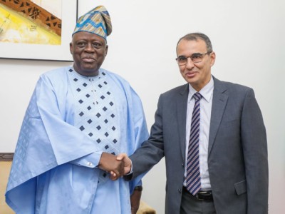 « …J’ai eu l’honneur et le privilège d’être reçu par le président de l’Assemblée nationale du Bénin à qui j’ai remis une lettre d’invitation de son frère, le président de la Chambre des représentants du Royaume du Maroc M. Rachid Talbi El Alami pour organiser une visite officielle de l’autorité parlementaire en tant que président de l’Assemblée nationale et aussi en tant que président du groupe d’amitié Bénin-Maroc. C’est depuis quelques semaines qu’il y a eu la formation des deux groupes de part et d’autres: groupe d’amitié Bénin-Maroc et groupe d’amitié Maroc-Bénin. Ce sera l’occasion d’échanger encore lors de la prochaine visite du président Louis Gbèhounou VLAVONOU au Maroc des questions de renforcement des relations qui sont déjà excellentes entre le Royaume du Maroc et le Bénin avec à leur tête son Excellence le président Patrice TALON et sa Majesté le Roi du Maroc Mohammed VI… »