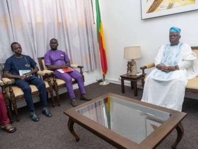 Le Président de l’Assemblée nationale Louis Gbèhounou VLAVONOU a reçu successivement à son cabinet au Palais des Gouverneurs à Porto-Novo ce vendredi 31 janvier 2025 Zacharie ARO, Président de la Fédération des étudiants du Plateau (FEDEP), Thimothée ADANLIN, Président du bureau exécutif de l’Association des anciens des anciens parlementaires du Bénin (As-NAP-Bénin) et une délégation du bureau du Haut conseil national de vodun Mami-Dan du Bénin (HCN-VMDB) conduite par son Président, Hounon BEHUMBEZA.
