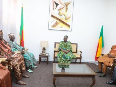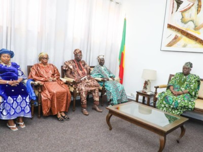 Une délégation de l’Association pour le Développement de la Cité Royale d’Adja-Ouèrè conduite par le roi ADEWORI IWALOYE a été reçue dans la matinée de ce lundi 10 mars par le Président de l’Assemblée nationale Louis Gbèhounou VLAVONOU. Au cœur des échanges, la reconnaissance du royaume d’Adja-Ouèrè dans le cadre du vote de la loi sur la chefferie traditionnelle au Bénin déjà en examen au parlement actuellement. La délégation est venue exposer à l’autorité parlementaire, la particularité du royaume d’Adja-Ouèrè.