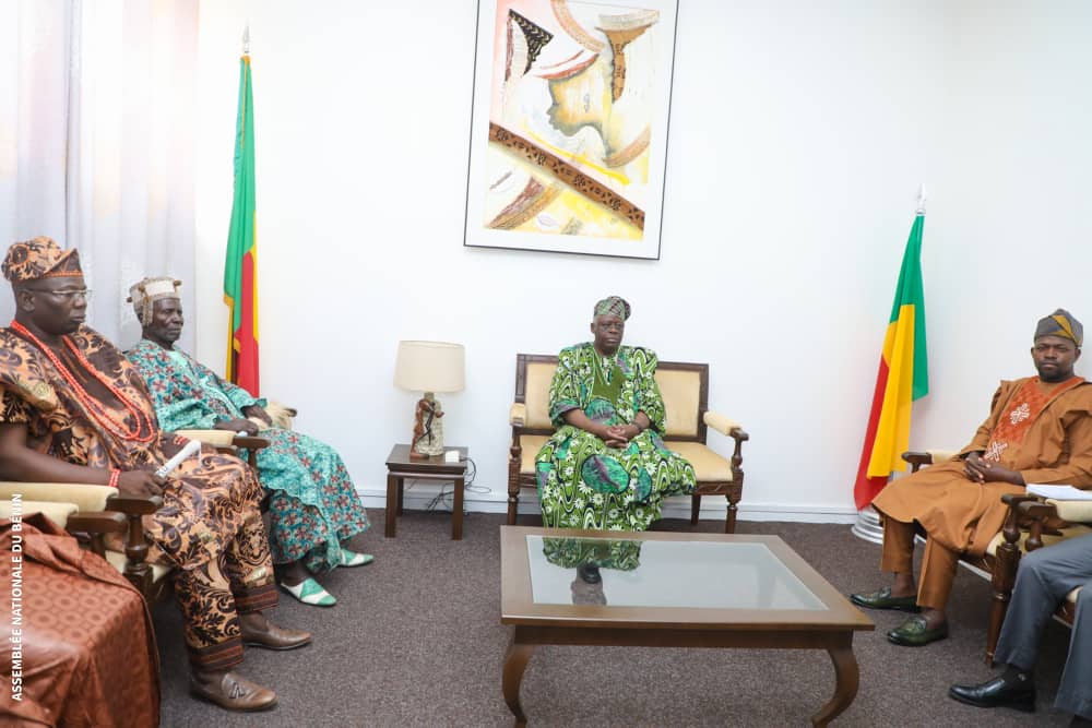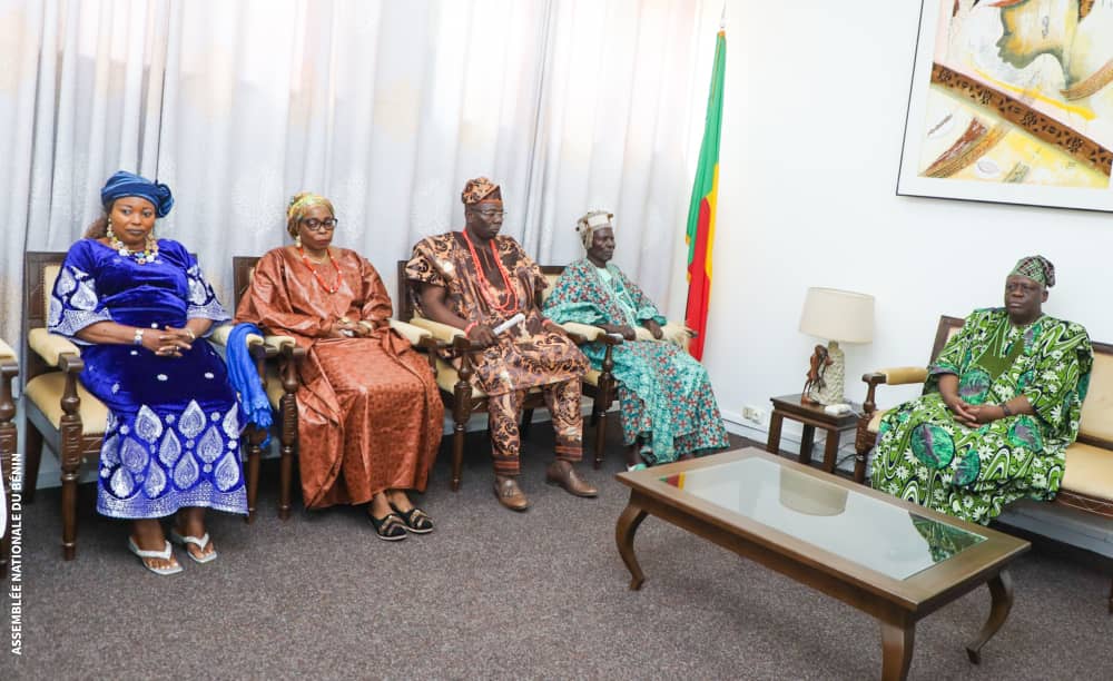 Une délégation de l’Association pour le Développement de la Cité Royale d’Adja-Ouèrè conduite par le roi ADEWORI IWALOYE a été reçue dans la matinée de ce lundi 10 mars par le Président de l’Assemblée nationale Louis Gbèhounou VLAVONOU. Au cœur des échanges, la reconnaissance du royaume d’Adja-Ouèrè dans le cadre du vote de la loi sur la chefferie traditionnelle au Bénin déjà en examen au parlement actuellement. La délégation est venue exposer à l’autorité parlementaire, la particularité du royaume d’Adja-Ouèrè.