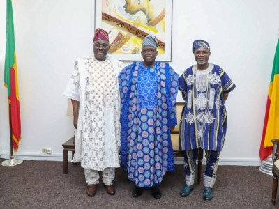 En début de matinée de ce mercredi 12 mars 2025, le président de l’Assemblée nationale, Louis Gbèhounou VLAVONOU, a reçu en audience à son cabinet au Palais des Gouverneurs à Porto-Novo, Dr Yessoufou MAROYA, Consul honoraire de la République du Bénin près du Gabon à Libreville. Accompagné par Wabi AMADANI, chargé de mission du maire de Porto-Novo, le diplomate est allé prendre les conseils de l’autorité parlementaire aux fins de sensibiliser davantage les Béninois résidents au Gabon pour un meilleur respect de la loi et de la réglementation en vigueur au pays du Général Brice OLIGUI NGUEMA lors des élections présidentielles d’avril prochain.