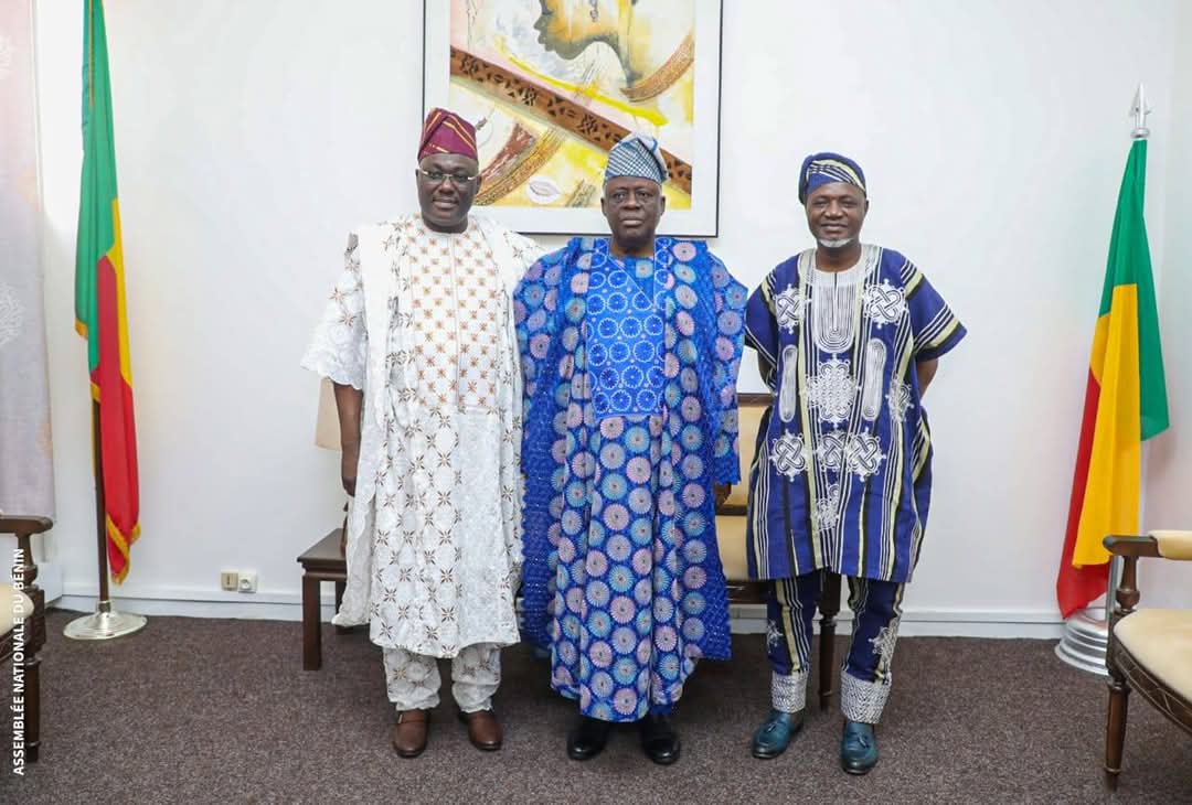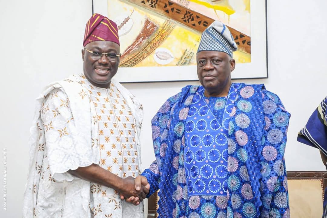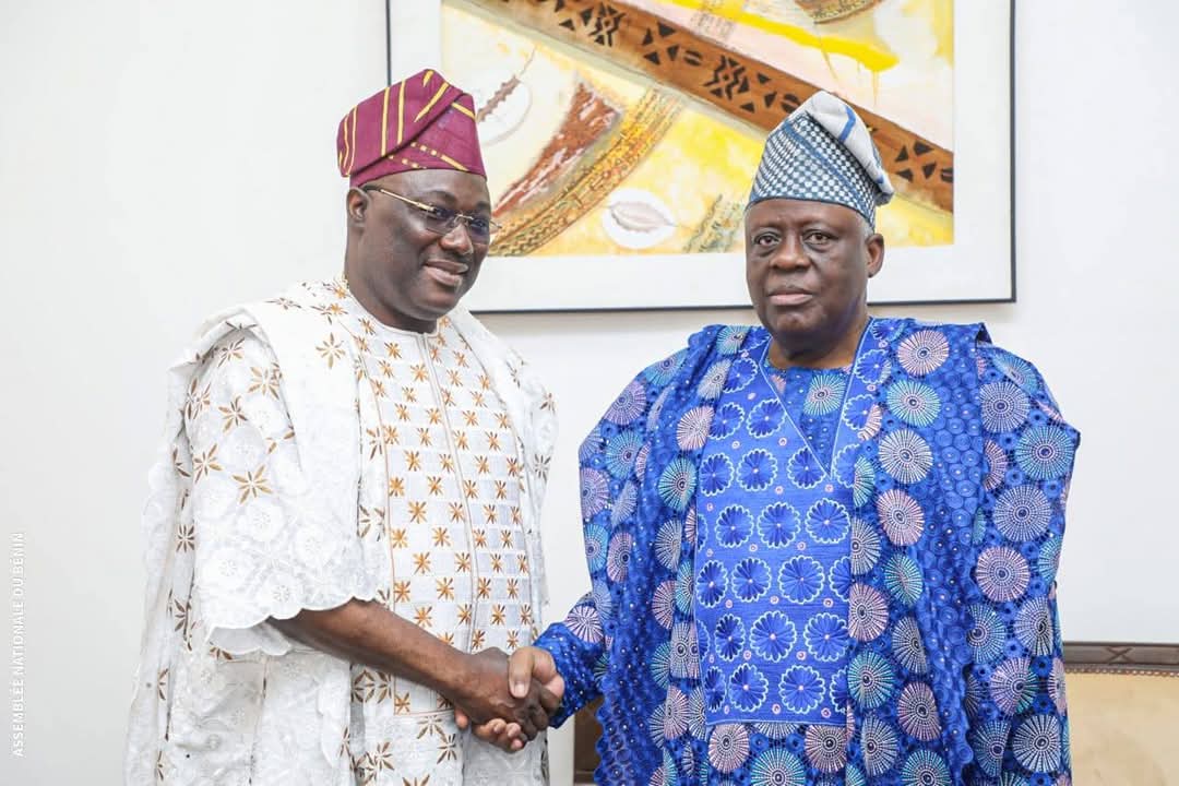 En début de matinée de ce mercredi 12 mars 2025, le président de l’Assemblée nationale, Louis Gbèhounou VLAVONOU, a reçu en audience à son cabinet au Palais des Gouverneurs à Porto-Novo, Dr Yessoufou MAROYA, Consul honoraire de la République du Bénin près du Gabon à Libreville. Accompagné par Wabi AMADANI, chargé de mission du maire de Porto-Novo, le diplomate est allé prendre les conseils de l’autorité parlementaire aux fins de sensibiliser davantage les Béninois résidents au Gabon pour un meilleur respect de la loi et de la réglementation en vigueur au pays du Général Brice OLIGUI NGUEMA lors des élections présidentielles d’avril prochain.