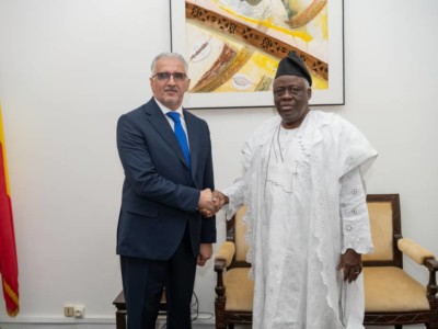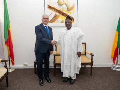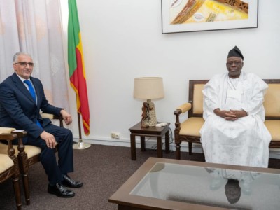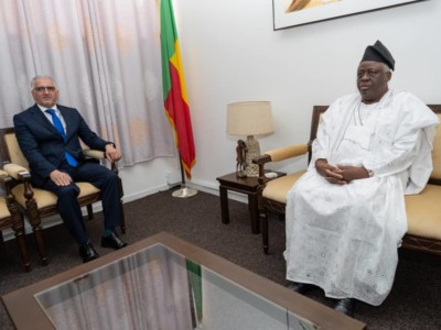 Hocine MEZOUED, Ambassadeur de la République Algérienne démocratique et populaire auprès de la République du Bénin avec résidence à Abuja a été reçu dans la soirée de ce vendredi 14 mars 2025 par le président de l’Assemblée nationale Louis Gbèhounou VLAVONOU. Il était question pour les deux personnalités d’échanger sur les axes de coopération bilatérale entre l’Algérie et le Bénin notamment les questions liées à la coopération interparlementaire entre les deux pays sans oublier les questions régionales et internationales d’intérêts communs pour les deux pays frères.