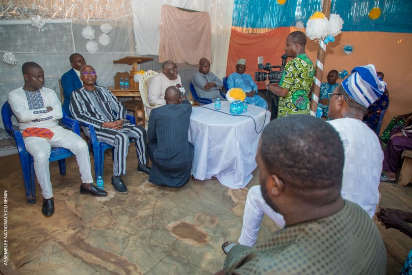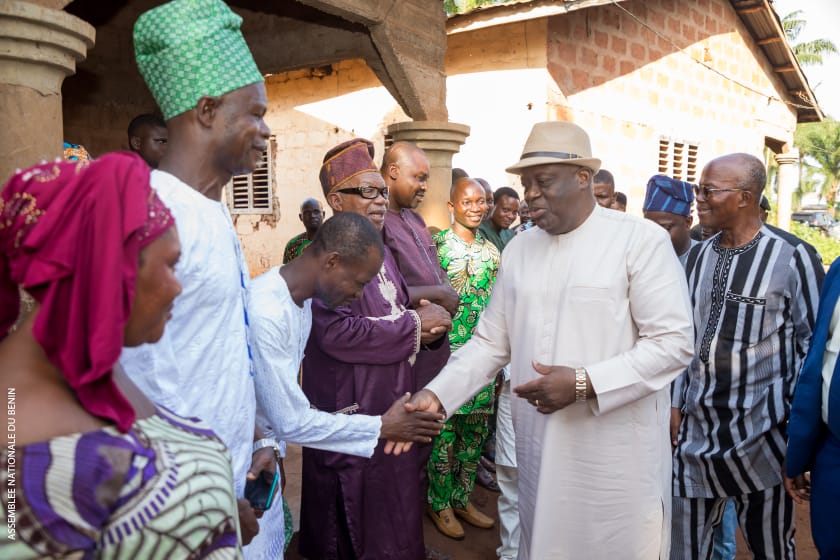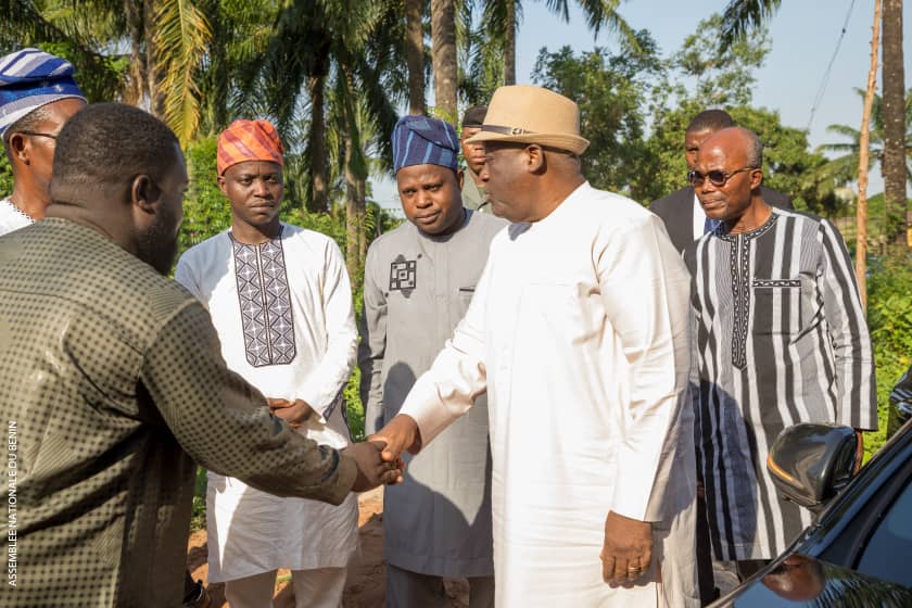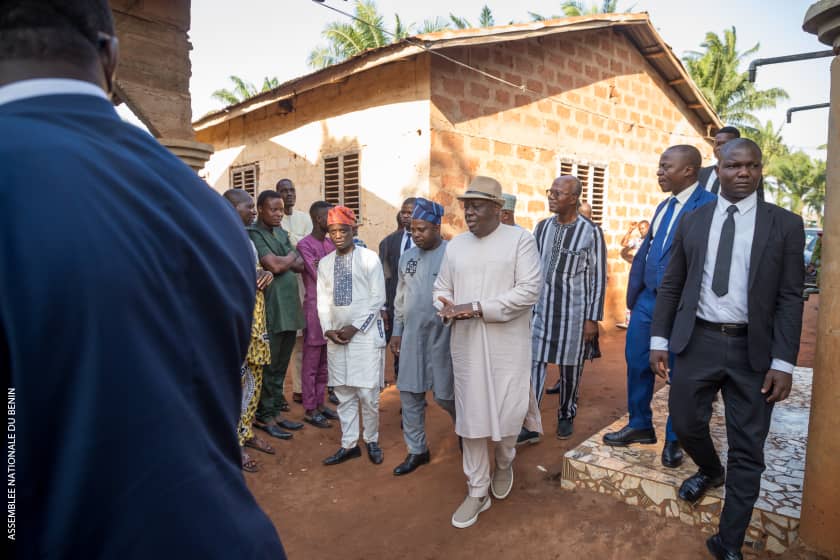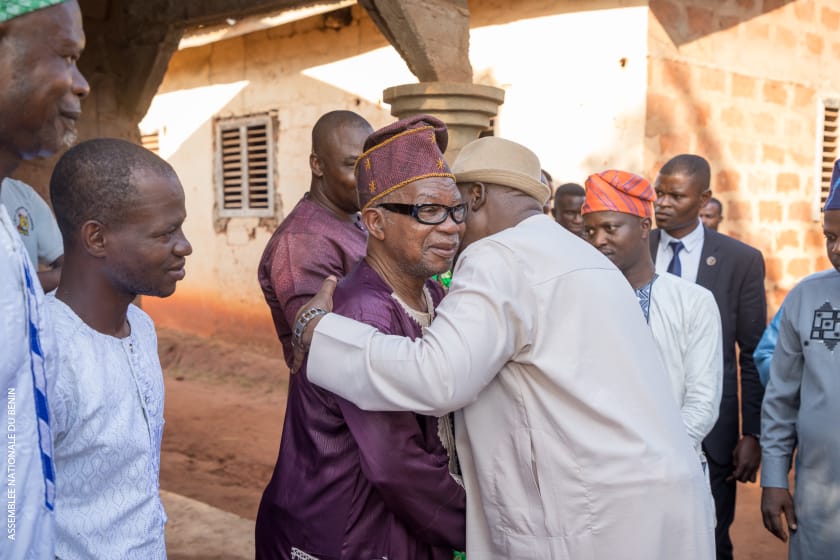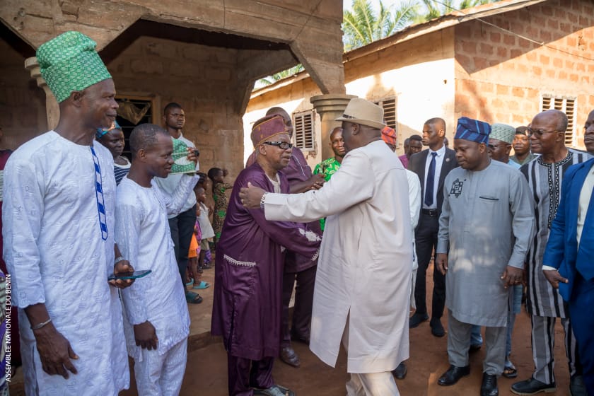 Dans l’après-midi de ce jeudi 24 avril 2025, le président de l’Assemblée nationale Louis Gbèhounou VLAVONOU à la tête d’une forte délégation composée du Maire de la Ville d’Ifangni et tout le conseil communal et plusieurs responsables de l’administration parlementaire, s’est rendu au domicile de feu Ignace ATCHADJOU, premier adjoint au maire d’Ifangni décédé le 6 avril 2025. Le Président Louis Gbèhounou VLAVONOU et sa suite sont allés présenter à la famille éplorée, leurs condoléances ainsi que celle de l’Assemblée nationale du Bénin.