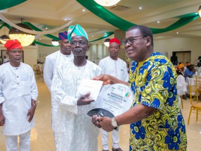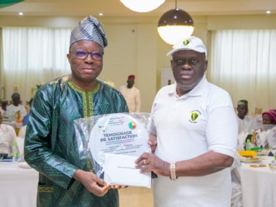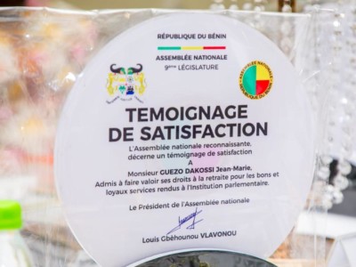 Après les deux allocutions, il a été procédé à la remise de cadeaux à dix neuf (19) agents parlementaires admis à faire valoir leur droit à la retraite. Monsieur André Odon Aro, ancien Chef Service personnel de l’Assemblée nationale prenant la parle au nom des récipiendaires a dit toute sa gratitude au Président VLAVONOU pour tous les efforts consentis dans l’amélioration des conditions de vie du personnel de l’administration parlementaire: « … En ce jour tant espére pour dix neuf (19) de vos anciens collègues, ils ont voulu que je porte leur voix. Je voudrais vous dire combien l’émotion est forte. Les jours passent mais ne se ressemblent pas. Il y en a qui reste inoubliable et ce samedi en est un. Vous avez voulu nous rendre hommage. Monsieur le Président, connaissant votre simplicité, votre humilité et votre sociabilité, je voudrais vous prier avec toute la déférence qui convient d’accepter la gratitude de tous mes collègues. Comment ne pas vous remercier pour cet acte que vous posez ce jour…Une pensée aux collègues retraités qui ne sont plus parmis nous aujourd’hui. Monsieur le président, votre leadership force l’adminiration. En nous honorant devant la jeune génération pour qui nous avons passé le flambeau, c’est un message fort que vous leur passez afin qu’ils puissent tisser l’ancienne corde à la nouvelle. L’histoire retiendra les nombreuses actions que vous avez posé au profit des agents parlementaires en général et particulièrement au profit des retraités… » a-t-il martelé.