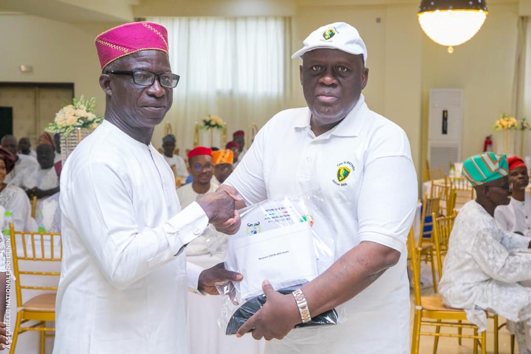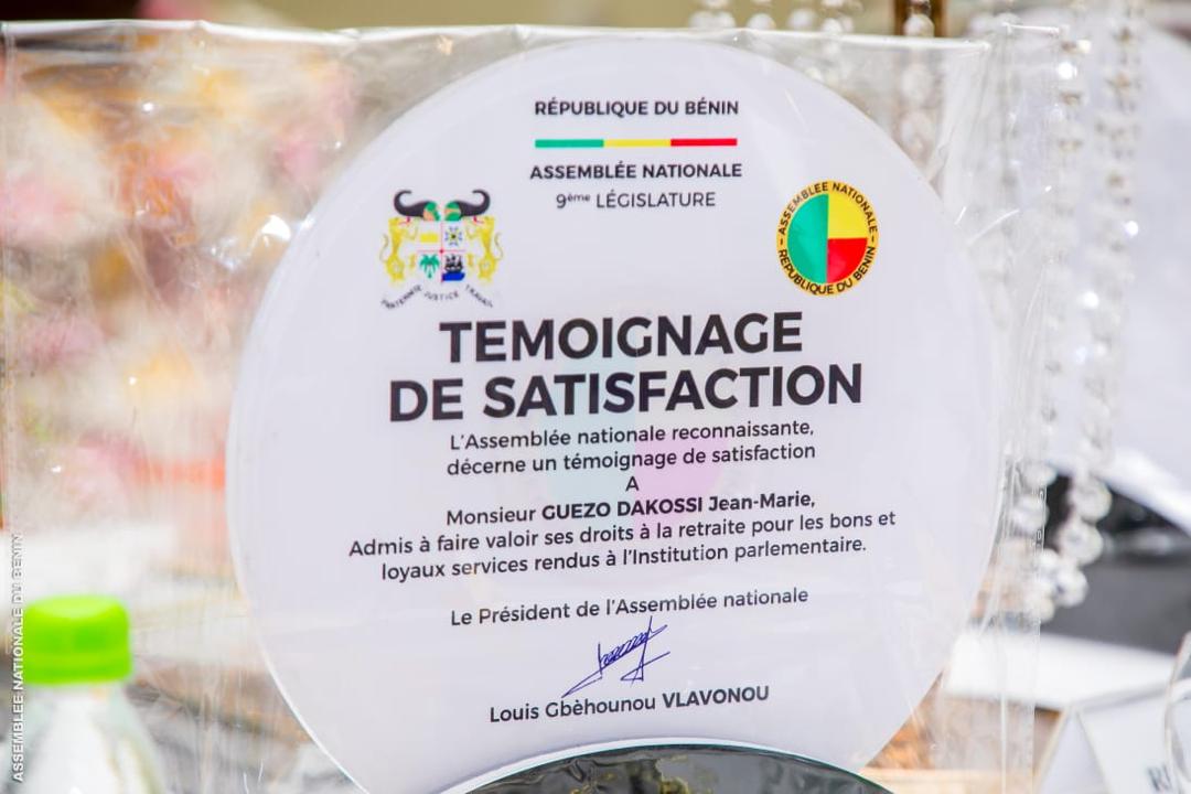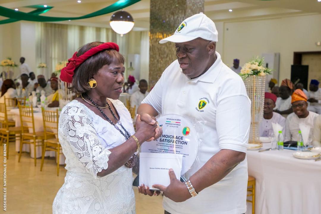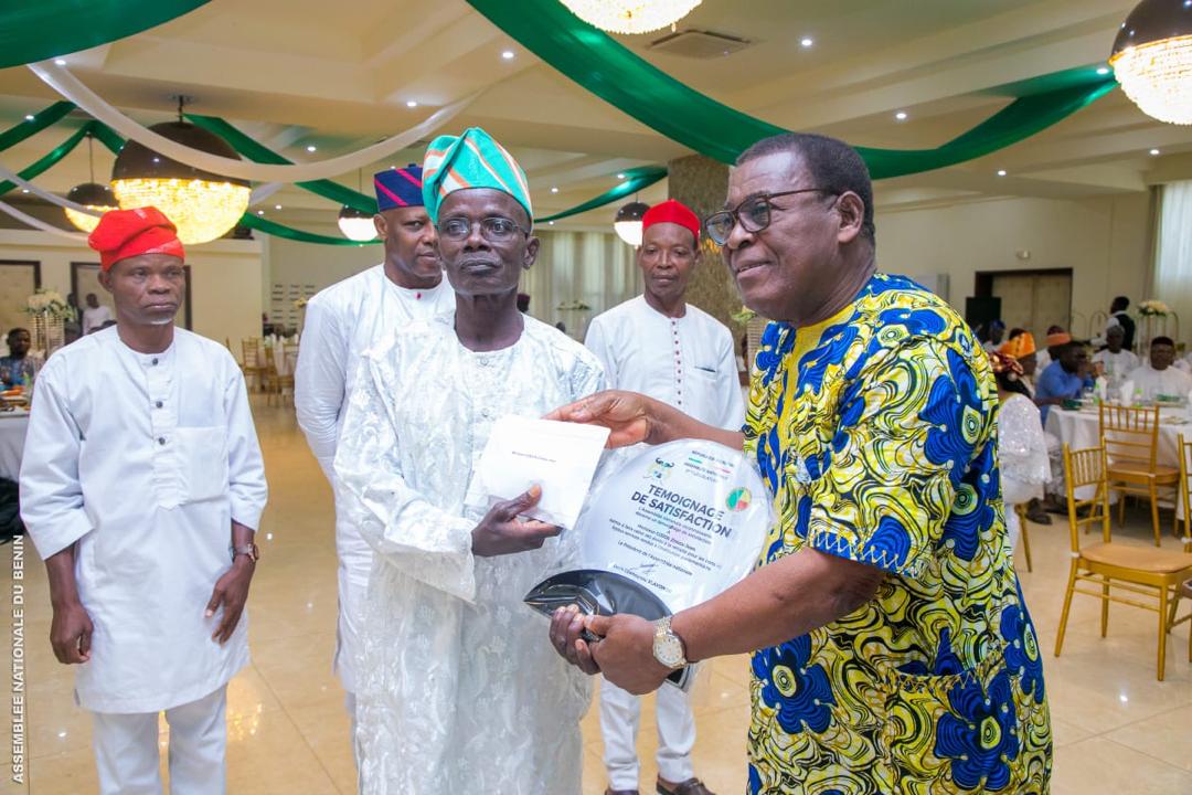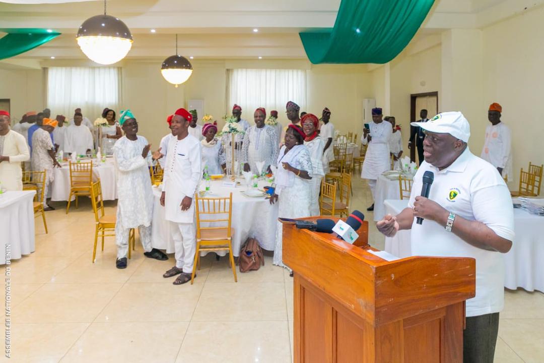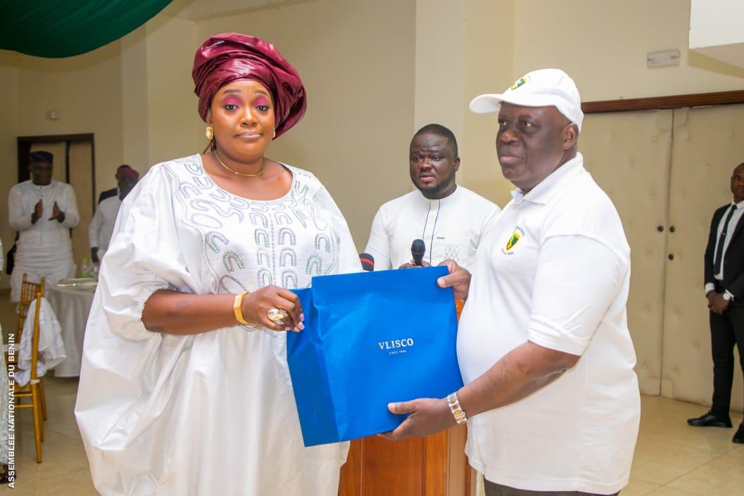 Après les deux allocutions, il a été procédé à la remise de cadeaux à dix neuf (19) agents parlementaires admis à faire valoir leur droit à la retraite. Monsieur André Odon Aro, ancien Chef Service personnel de l’Assemblée nationale prenant la parle au nom des récipiendaires a dit toute sa gratitude au Président VLAVONOU pour tous les efforts consentis dans l’amélioration des conditions de vie du personnel de l’administration parlementaire: « … En ce jour tant espére pour dix neuf (19) de vos anciens collègues, ils ont voulu que je porte leur voix. Je voudrais vous dire combien l’émotion est forte. Les jours passent mais ne se ressemblent pas. Il y en a qui reste inoubliable et ce samedi en est un. Vous avez voulu nous rendre hommage. Monsieur le Président, connaissant votre simplicité, votre humilité et votre sociabilité, je voudrais vous prier avec toute la déférence qui convient d’accepter la gratitude de tous mes collègues. Comment ne pas vous remercier pour cet acte que vous posez ce jour…Une pensée aux collègues retraités qui ne sont plus parmis nous aujourd’hui. Monsieur le président, votre leadership force l’adminiration. En nous honorant devant la jeune génération pour qui nous avons passé le flambeau, c’est un message fort que vous leur passez afin qu’ils puissent tisser l’ancienne corde à la nouvelle. L’histoire retiendra les nombreuses actions que vous avez posé au profit des agents parlementaires en général et particulièrement au profit des retraités… » a-t-il martelé.