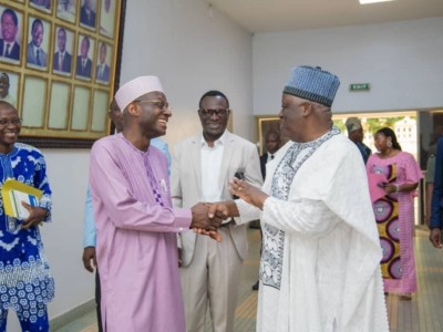 « …Nous sommes très ravis d’avoir rencontré le Président de l’Assemblée nationale ce matin à propos de la prochaine réunion importante à l’international que la Plateforme du secteur sanitaire privé du Bénin est entrain de préparer. Il s’agit d’une conférence de haut niveau portant sur le financement en santé. Par rapport à ça, notre ambition c’est que nous puissions travailler ensemble avec toutes les commissions au niveau de l’Assemblée nationale pour que le système santé, le domaine d’utilité publique qu’il représente pour les professionnels de santé, pour les formations sanitaires particulièrement les formations sanitaires privées, que nous puissions effectivement utiliser les experts, les compétences qui existent vraiment au sein de l’Assemblée nationale sur le plan législatif ; en arriver à des cotations. C’est en cela qu’honnêtement nous avions eu des échanges qui sont prometteurs dans l’accompagnement. Nos préoccupations ont été bien prises en compte par le président de l’Assemblée nationale. Nous sommes venus dans un timing où ce qui va être valorisé en 2026, sera bouclé fin juin 2025. Donc nous allons travailler. Cette discussion de ce matin nous permet de savoir que d’une position de non sachants sur le plan législatif, nous avons été abreuvés sur des conditions basiques que nous n’avions pas. Ça nous permet de mieux nous armer pour cette conférence de haut niveau afin qu’à l’issue de ces assises, nous puissions poursuivre avec détermination, avec résilience et beaucoup de ferveur même si ce sera long. Mais nos rêves que nous avions mis pour la réalisation de cette conférence de haut niveau pour que le financement en santé soit valorisé et que le Béninois où il est, il puisse bénéficier effectivement des soins de qualité dans le secteur privé. Nous allons continuer à y travailler. Ce sera un sursaut d’éveil pour que nos doléances puissent effectivement être soutenues, travaillées, retravaillées et que la qualité y soit même si cela doit prendre quelques mois. Nous allons continuer à y travailler et franchement nous avions eu une discussion très amicale, très détendue mais d’une clairvoyance qui nous permet vraiment de partir d’ici confiants du fait que nous avons à faire, nous allons continuer effectivement de travailler, nous allons le poursuivre efficacement. Nous ne saurions terminer sans remercier la disponibilité et la spontanéité du président de l’Assemblée nationale qui vraiment a su nous recevoir dans un bref moment. Il nous a reçus largement dans une ambiance détendue et nous avons discuté sans vraiment avoir des questions tabous. ».