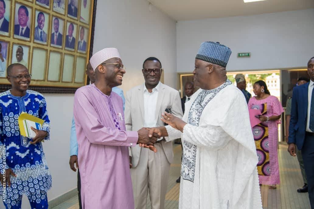 « …Nous sommes très ravis d’avoir rencontré le Président de l’Assemblée nationale ce matin à propos de la prochaine réunion importante à l’international que la Plateforme du secteur sanitaire privé du Bénin est entrain de préparer. Il s’agit d’une conférence de haut niveau portant sur le financement en santé. Par rapport à ça, notre ambition c’est que nous puissions travailler ensemble avec toutes les commissions au niveau de l’Assemblée nationale pour que le système santé, le domaine d’utilité publique qu’il représente pour les professionnels de santé, pour les formations sanitaires particulièrement les formations sanitaires privées, que nous puissions effectivement utiliser les experts, les compétences qui existent vraiment au sein de l’Assemblée nationale sur le plan législatif ; en arriver à des cotations. C’est en cela qu’honnêtement nous avions eu des échanges qui sont prometteurs dans l’accompagnement. Nos préoccupations ont été bien prises en compte par le président de l’Assemblée nationale. Nous sommes venus dans un timing où ce qui va être valorisé en 2026, sera bouclé fin juin 2025. Donc nous allons travailler. Cette discussion de ce matin nous permet de savoir que d’une position de non sachants sur le plan législatif, nous avons été abreuvés sur des conditions basiques que nous n’avions pas. Ça nous permet de mieux nous armer pour cette conférence de haut niveau afin qu’à l’issue de ces assises, nous puissions poursuivre avec détermination, avec résilience et beaucoup de ferveur même si ce sera long. Mais nos rêves que nous avions mis pour la réalisation de cette conférence de haut niveau pour que le financement en santé soit valorisé et que le Béninois où il est, il puisse bénéficier effectivement des soins de qualité dans le secteur privé. Nous allons continuer à y travailler. Ce sera un sursaut d’éveil pour que nos doléances puissent effectivement être soutenues, travaillées, retravaillées et que la qualité y soit même si cela doit prendre quelques mois. Nous allons continuer à y travailler et franchement nous avions eu une discussion très amicale, très détendue mais d’une clairvoyance qui nous permet vraiment de partir d’ici confiants du fait que nous avons à faire, nous allons continuer effectivement de travailler, nous allons le poursuivre efficacement. Nous ne saurions terminer sans remercier la disponibilité et la spontanéité du président de l’Assemblée nationale qui vraiment a su nous recevoir dans un bref moment. Il nous a reçus largement dans une ambiance détendue et nous avons discuté sans vraiment avoir des questions tabous. ».