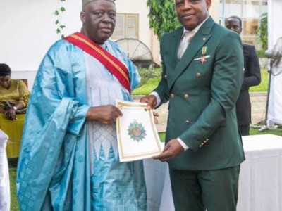 Après le port des insignes aux récipiendaires, la lecture et la signature des procès-verbaux de réception, Philipe Adeniyi a pris la parole au nom des récipiendaires. D’abord, il a rendu grâce à Dieu pour l’honneur qui leur est fait de vivre ce moment historique. C’est un grand honneur, a-t-il mentionné, de prendre la parole pour exprimer nos sentiments profonds et transmettre avec sincérité notre reconnaissance. Par la suite, tour à tour, il a remercié les autorités qui ont reconnu à divers niveaux leurs qualités et efforts notamment le Président Patrice TALON, le président Louis Ghèhounou VLAVONOU pour son soutien et son accompagnement ; les anciens présidents de l’Assemblée nationale Adrien HOUNGBEDJI, Bruno AMOUSSOU, Antoine Kolawolé IDJI et Mathurin Coffi NAGO. Ses mots de remerciements sont également allés à l’endroit de la Grande chancellerie.