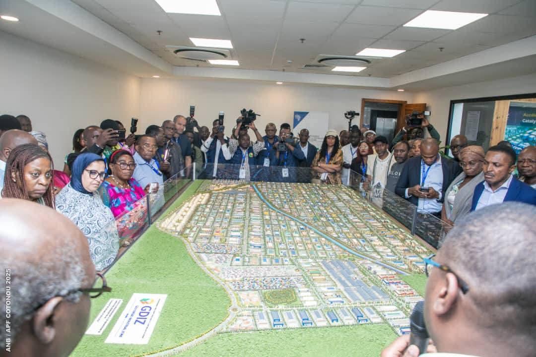À la zone industrielle de Glo-Djigbé Zè-Bénin (GDIZ) où elle a atterri en premier, la délégation de parlementaires francophones conduite par le Président de la section béninoise de l’APF a été accueillie par Faki ADJE, Directeur général adjoint de la GDIZ qui, sans transition, lui a présenté la zone dans tous ses compartiments ainsi que sa marquette. Une photo de famille a sanctionné ladite séance et directement une visite guidée du site a été organisée sous les regards satisfaits des hôtes du Président VLAVONOU.
