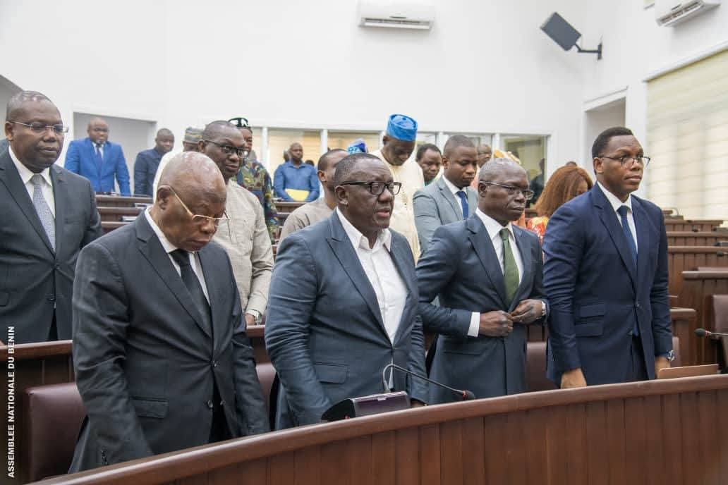 À cette séance plénière, le Gouvernement était représenté par M. Yvon DÉTCHÉNOU, ministre de la Justice et de la Législation, Garde des Sceaux ; M. Paulin Kègnidé AKPONNA, ministre de l’Énergie, de l’Eau et des Mines ; M. Gaston DOSSOUHOUI, ministre de l’Agriculture, de l’Élevage et de la Pêche ; et M. Salimane KARIMOU, ministre des Enseignements Maternel et Primaire.