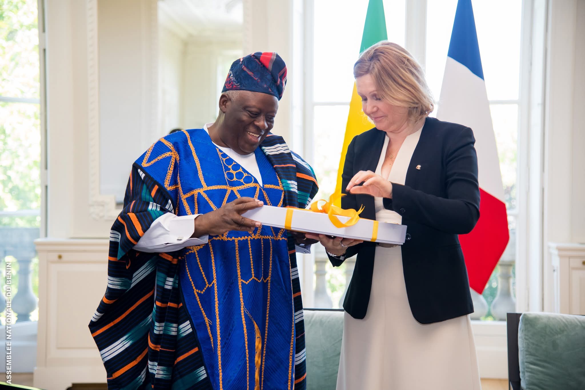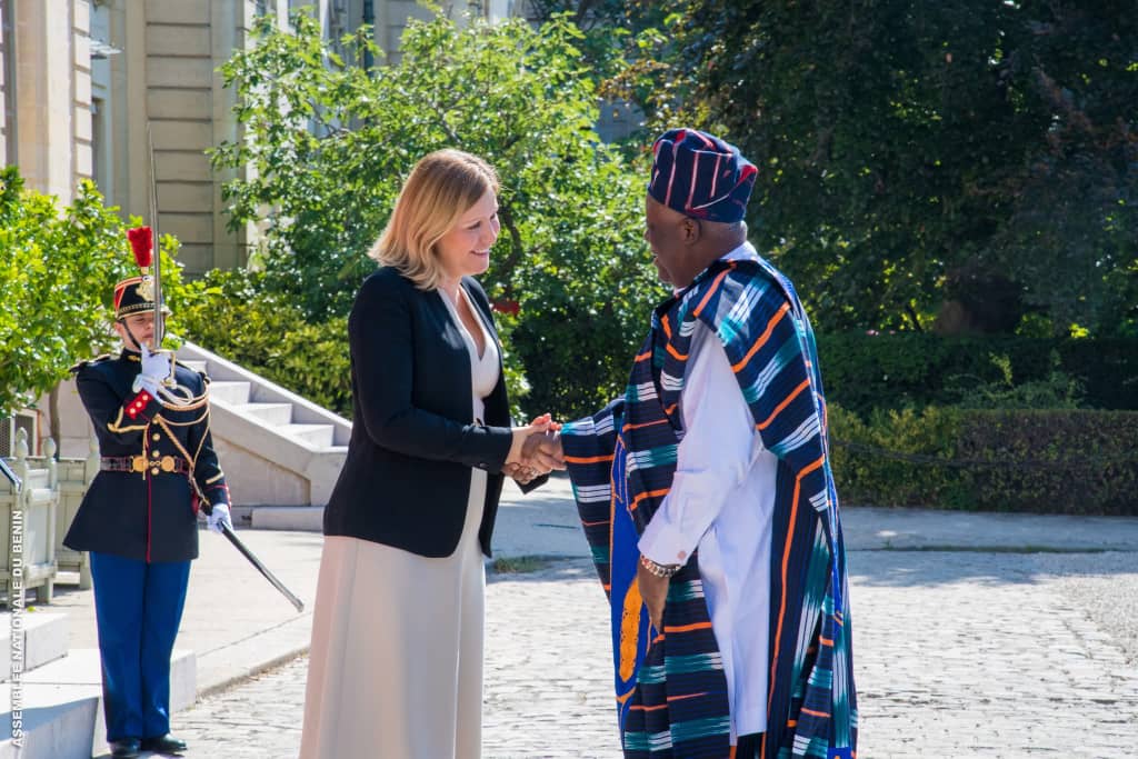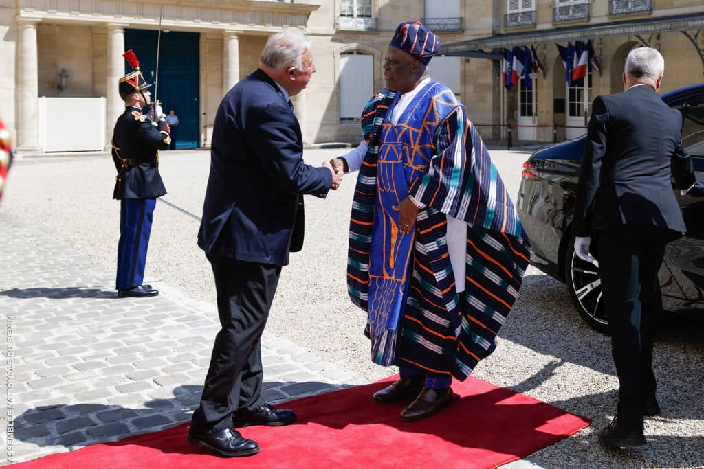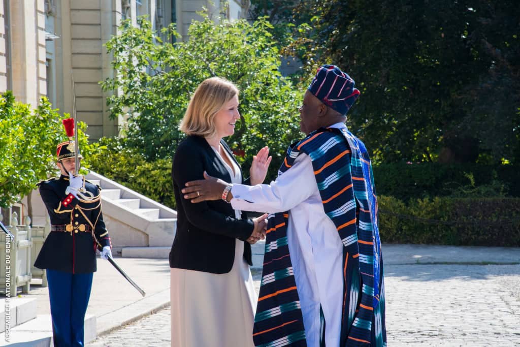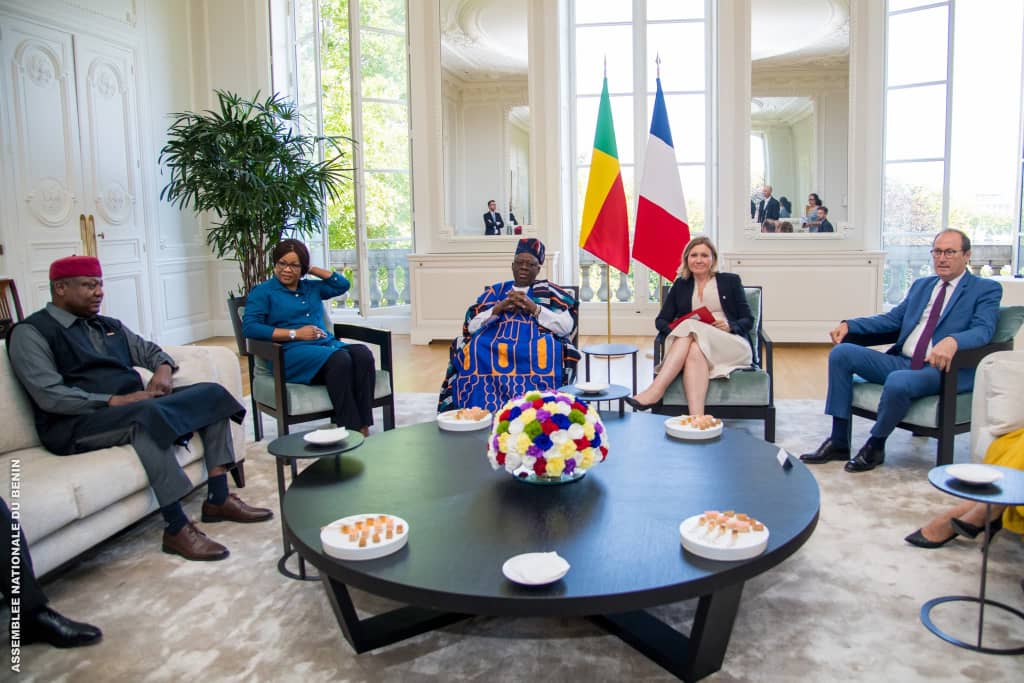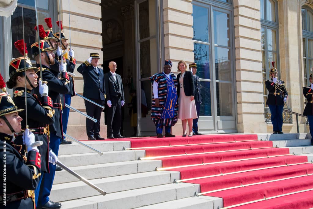 Accueilli au Palais Bourbon par Mme Yaël Braun-Pivet, Présidente de l’Assemblée nationale française, le Président de l’Assemblée nationale béninoise était entouré des Honorables Assan Séibou, vice-président de la section béninoise de l’APF, Orden Alladatin, Président de la Commission des Lois, et Chantal Ahyi, Deuxième Questeure.