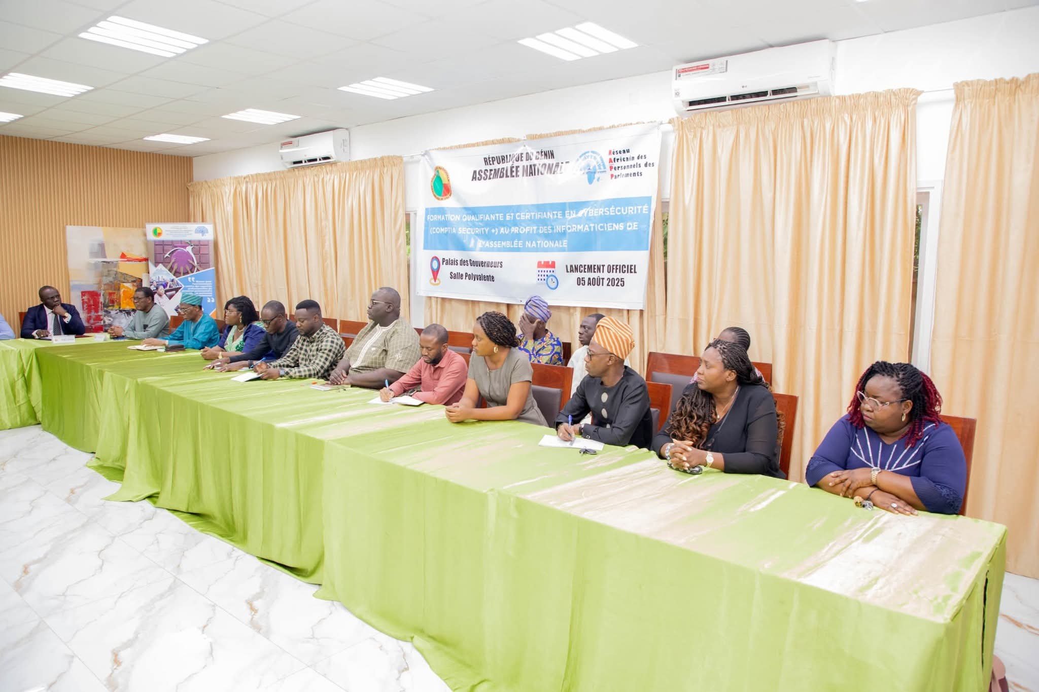La salle polyvalente Idji Kolawolé du Palais des Gouverneurs a accueilli, dans la matinée de ce mardi 5 août 2025, la cérémonie officielle de lancement de la formation qualifiante et certifiante en cybersécurité (COMPTIA SECURITY+), destinée aux informaticiens de l’Assemblée nationale du Bénin. Ladite cérémonie a été présidée par le Président de l’Assemblée nationale, Louis Gbèhounou VLAVONOU.