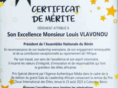 Outre ses collègues députés, le Président Louis Gbèhounou Vlavonou a dédié sa distinction à tous ceux qui, dans la discrétion des bureaux et le silence du travail bien fait, ont contribué à bâtir cette Assemblée performante et plus respectée. Il n’a pas oublié le personnel administratif, civil et militaire, dont le professionnalisme honore chaque jour le Parlement béninois ; ses collaborateurs, compagnons de chaque instant, dont la compétence et la loyauté l’accompagnent dans toutes ses missions ; puis enfin les partenaires techniques et financiers qui soutiennent les courageuses réformes engagées avec constance et confiance.