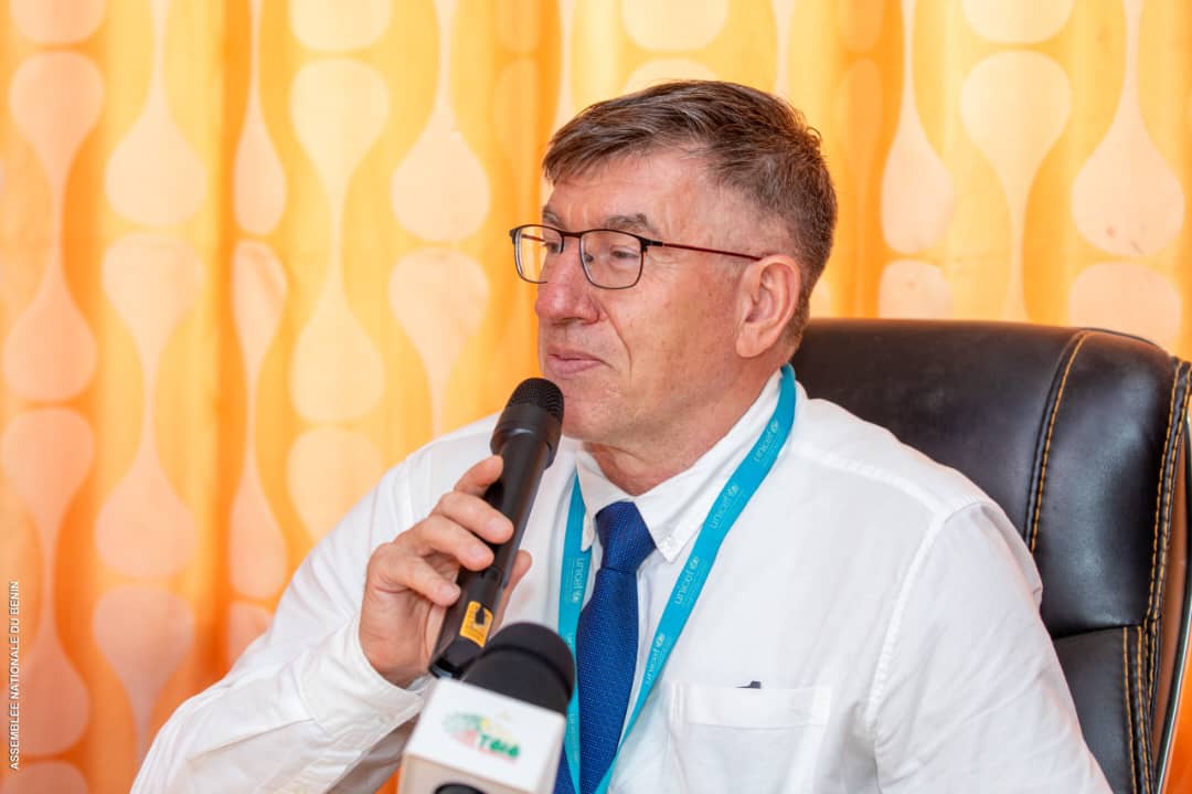 Chef des Politiques sociales de l’UNICEF au Bénin, a exprimé toute la reconnaissance de l’UNICEF pour l’honneur qui leur est fait d’être associés, une fois de plus, à cette retraite parlementaire. Pour lui, ce rendez-vous annuel est plus qu’une simple rencontre technique ; il est le symbole éloquent d’une collaboration institutionnelle exemplaire entre l’Assemblée nationale et l’UNICEF, au service de l’intérêt supérieur de la Nation, et avant tout, au service de ses enfants. Tout en mettant un point d’honneur sur le mérite de l’Assemblée nationale, qui a pu ériger le financement des secteurs sociaux en véritable priorité nationale, Serghei Toma BURUIANA a tenu à faire savoir que les chiffres parlent d’eux-mêmes et témoignent d’un engagement inébranlable : la part du budget de l’État allouée aux secteurs sociaux est passée de 32,6 % en 2019 à une projection impressionnante de 46,6 % en 2026. Il a, pour finir, souhaité des échanges fructueux, une analyse éclairée, et a réaffirmé le soutien indéfectible de l’UNICEF à la mission dévolue au Parlement.