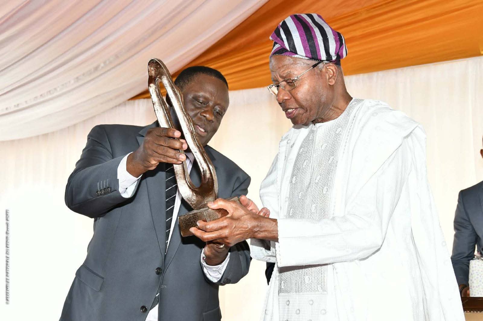 Faut-il le mentionner pour finir, l’un des temps forts de cette cérémonie a été la remise de l’ouvrage-témoignaes, des cadeaux et du trophée en guise d’hommage au Président HOUNGBÉDJI par le Président de l’Assemblée nationale.