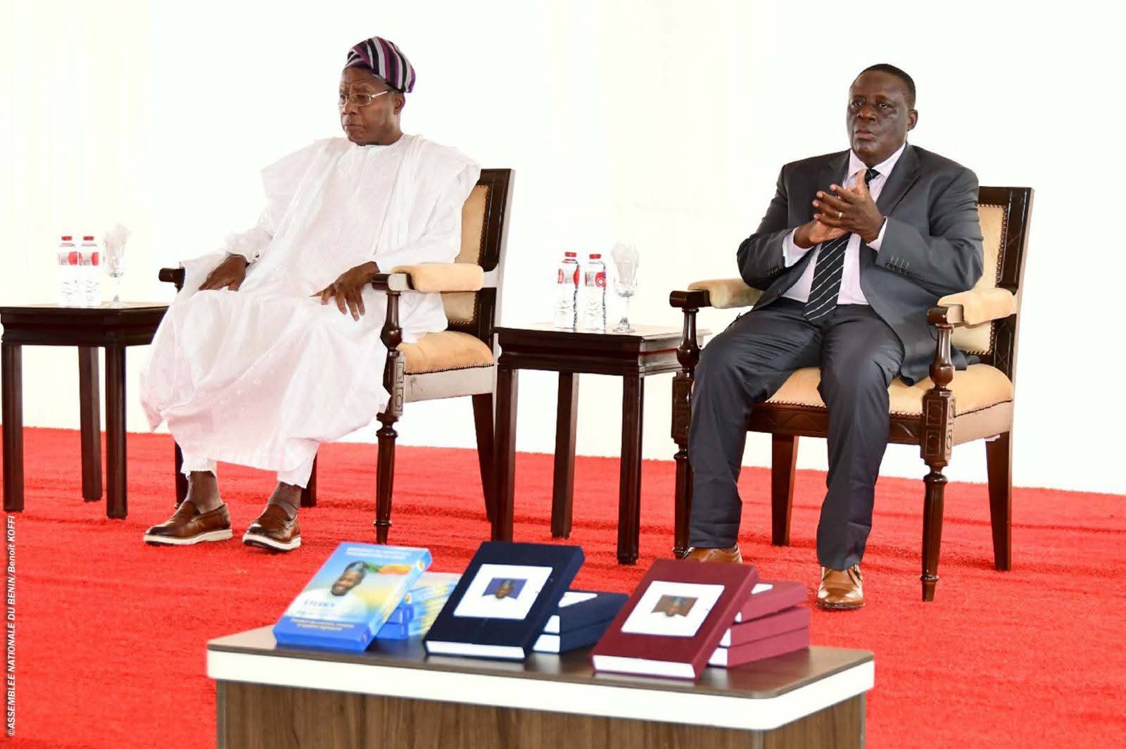 Au Président HOUNGBEDJI, le Président VLAVONOU a dit : « La Représentation nationale tient à saluer la marque que vous avez laissée, la rigueur que vous avez incarnée et la contribution déterminante que vous avez apportée à la consolidation de la démocratie parlementaire béninoise. L’ouvrage que nous vous remettons aujourd’hui témoigne de votre trajectoire exceptionnelle. Il ne célèbre pas seulement un homme. Il éclaire une manière de servir l’État, une façon d’habiter la fonction, une conception exigeante du rôle du Parlement dans la construction démocratique. Il constitue désormais une référence pour les générations actuelles et futures de parlementaires, pour l’administration, et pour tous ceux qui s’intéressent à la vie institutionnelle de notre pays. »